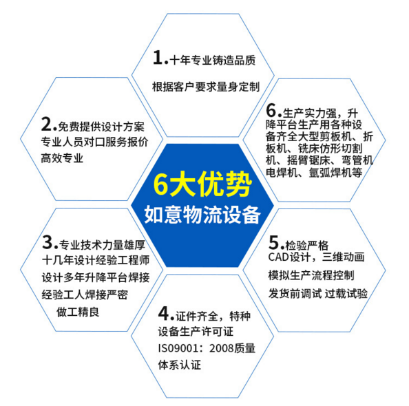 固定式液压升降台根据使用要求,可配置其它 附加装置,并可任意多项或组合,能达到更好的使用效果。